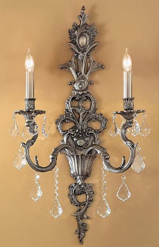 FeaturesFinish: Aged Pewter - Swarovski SpectraUses two 60W candelabra bulbsFinish shown: Aged PewterCrystal shown: Crystalique16 in. W x 8 in. D x 29 in. H Classic Lighting 57342 AGP SC Swarovski Spectra Crystal Majestic 29" Crystal Wallchiere from the Majestic Collection 57342-AGP?